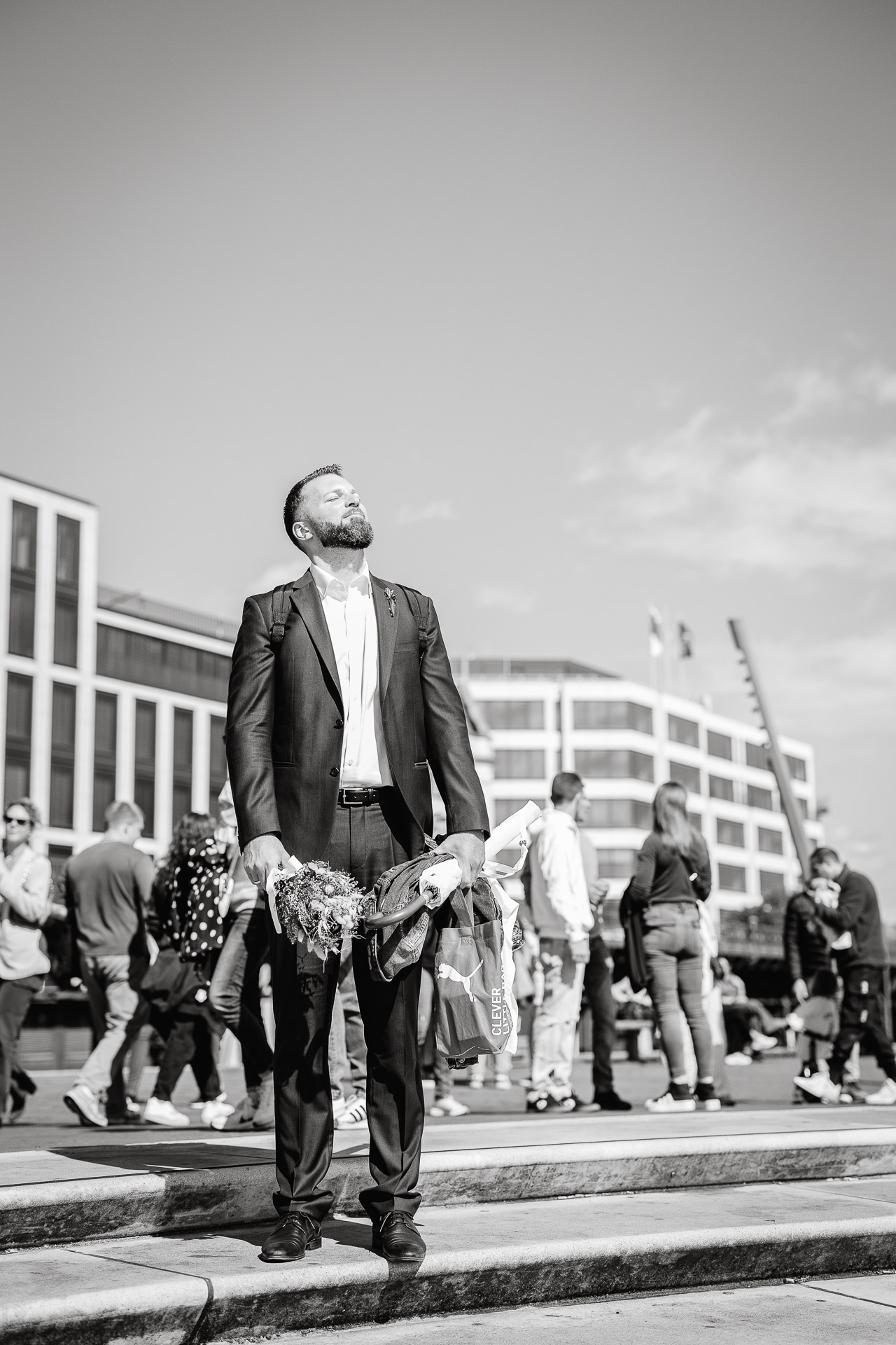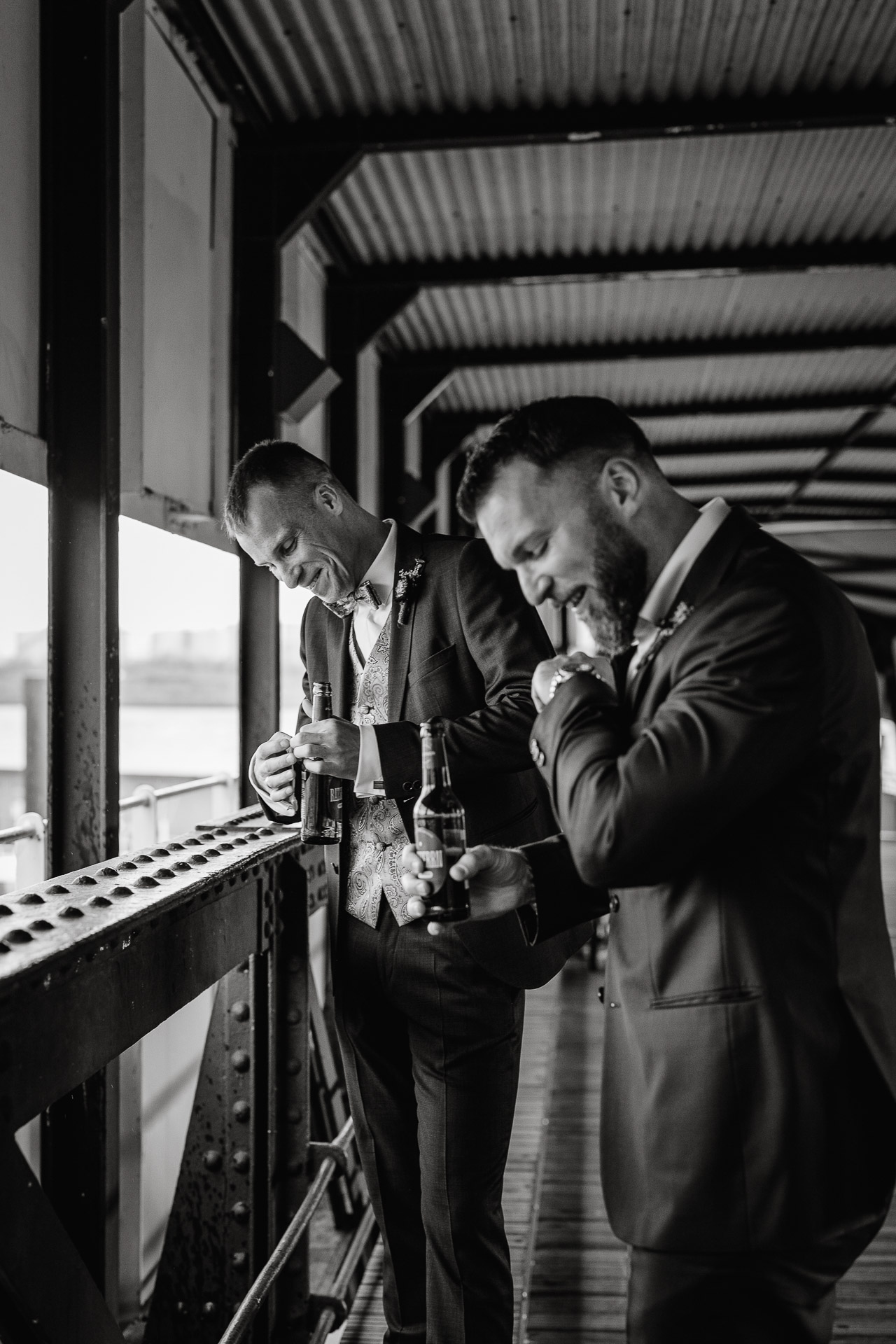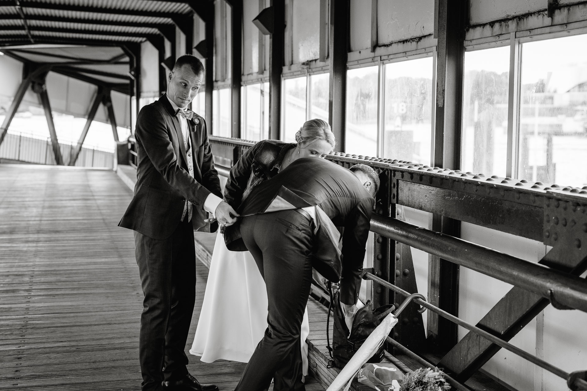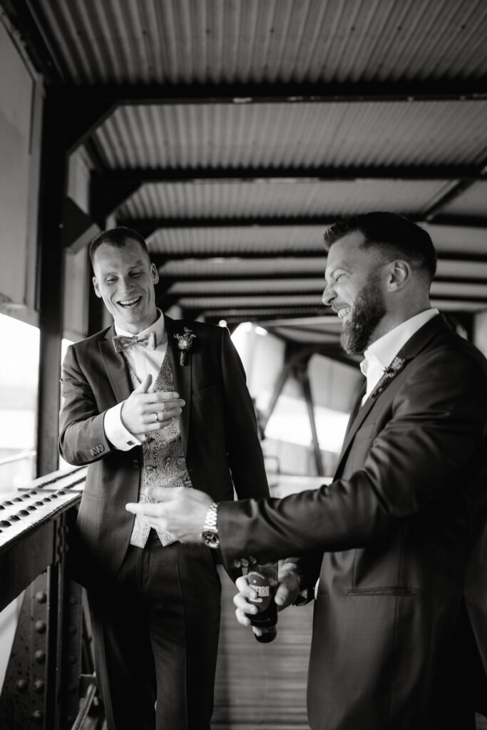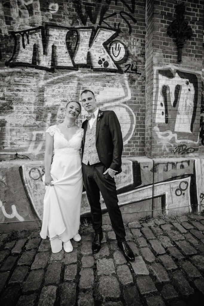 Direkt nach der standesamtlichen Trauung haben wir uns am Hamburger Hafen getroffen. Anna und Sven sind ein Paar, das mit Leichtigkeit durchs Leben geht – humorvoll, ausgelassen und spürbar verbunden. Genau das machte den Tag so besonders: nichts inszeniert, alles echt.