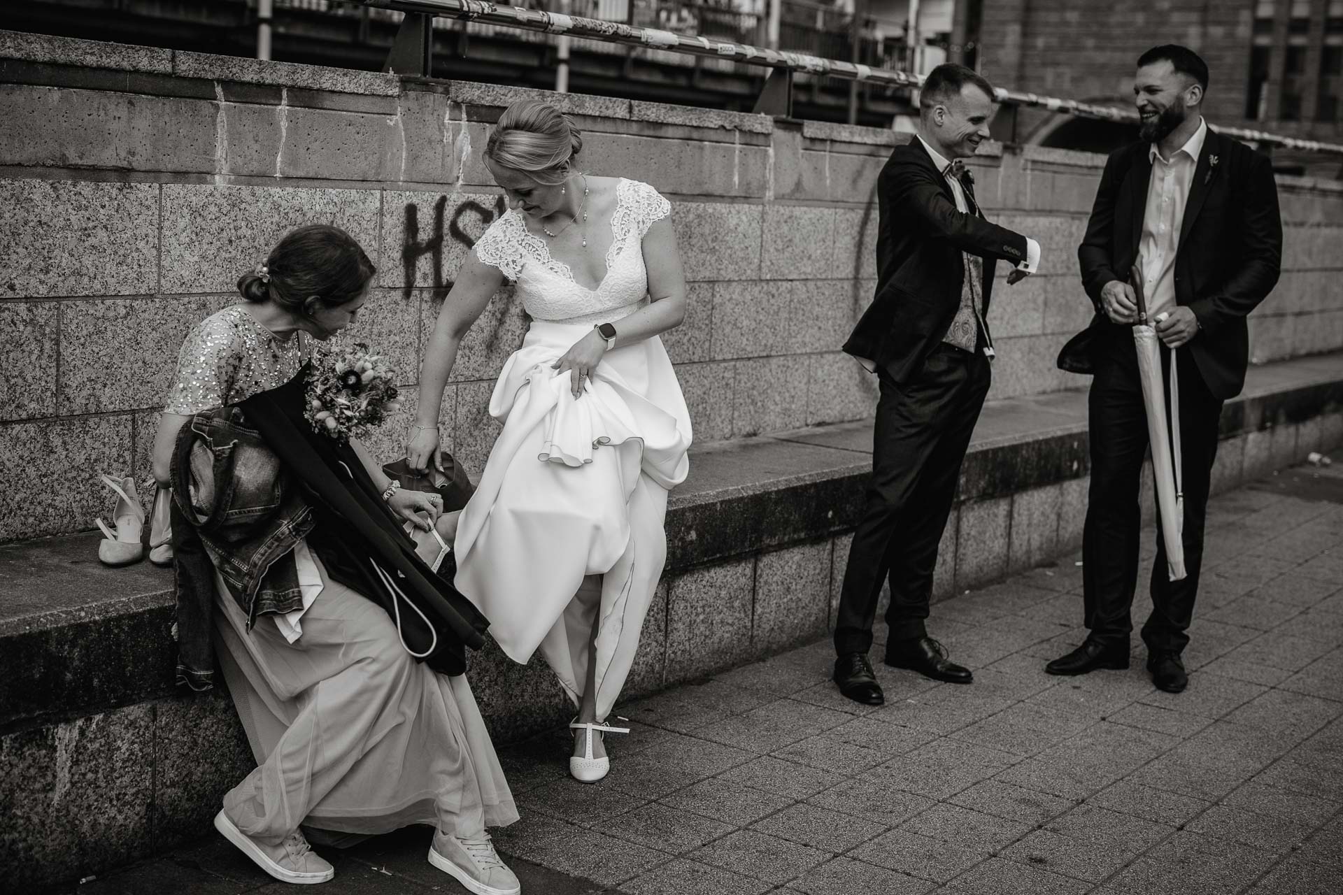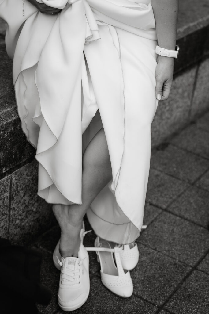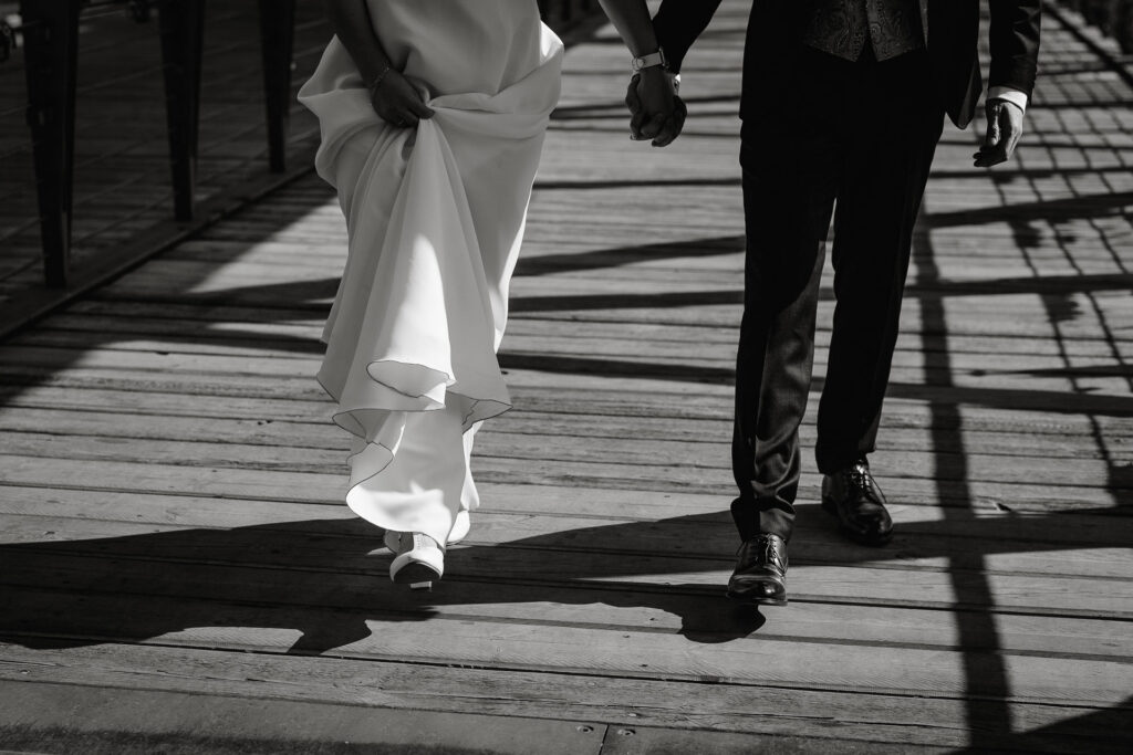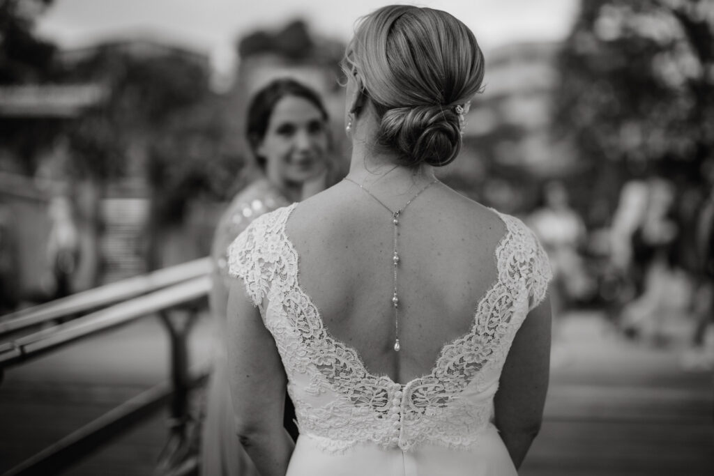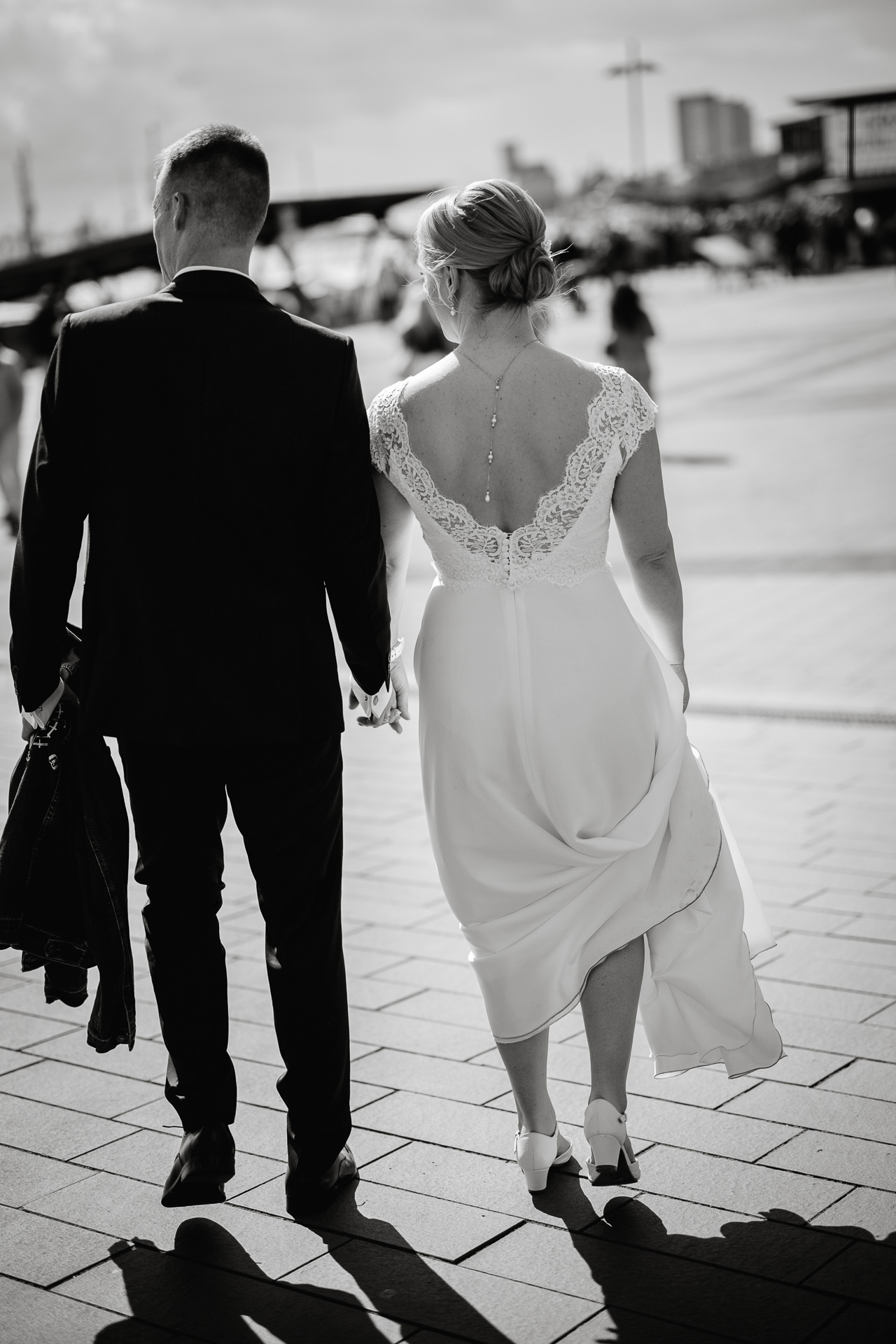 Zum Abschluss des Shootings spazierten wir zu der Location Waterfront. Ihre Liebe zum Hafen und zu Hamburg spiegelt sich in jedem Bild. Für mich war dieser Tag eine Erinnerung daran, warum ich Hochzeiten in meiner Stadt so liebe: weil sie so vielseitig, lebendig und authentisch sind – wie Hamburg selbst. Eigentlich wollten wir noch ganz klassisch ein Hamburger Fischbrötchen an der Landungsbrücke 10 essen, aber die Zeit lief uns doch etwas davon.