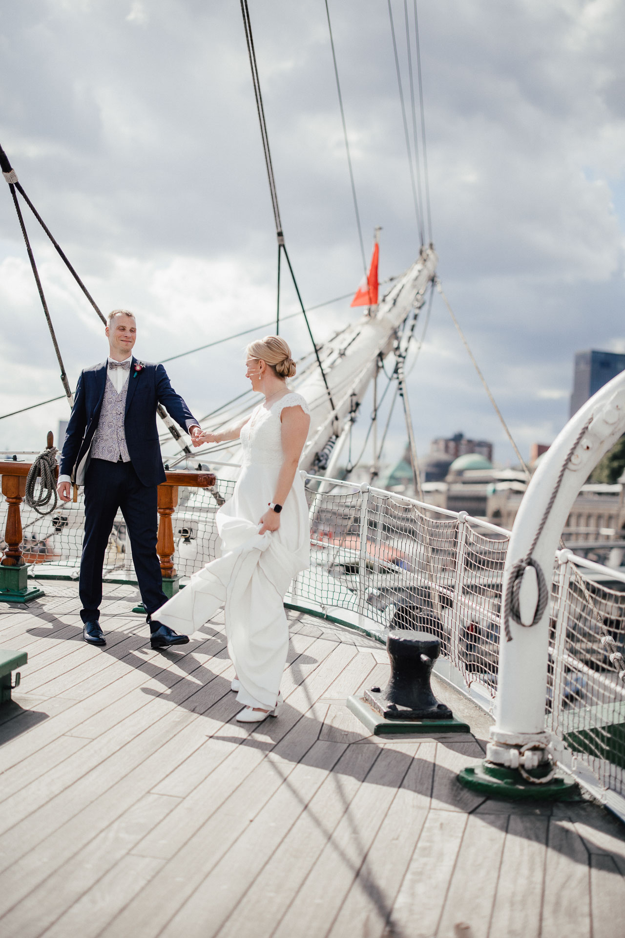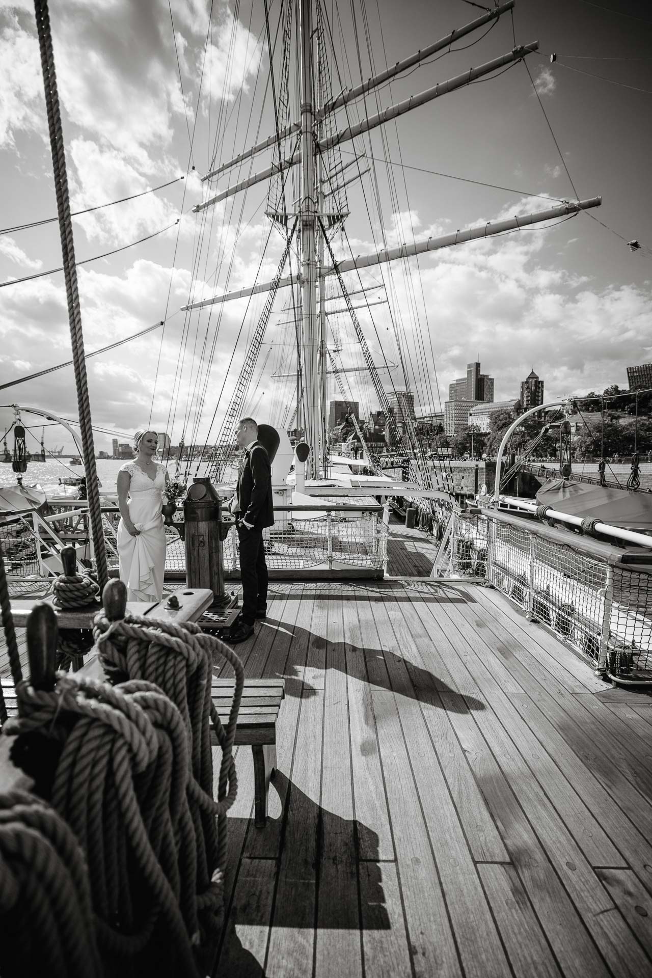 Auf Nachfrage durften wir sogar an Bord der Rickmer Rickmers fotografieren – ein magischer Ort mit Geschichte und maritimer Atmosphäre. Zwischen Seilen, Holz und Stahl ‑einfach toll. Diese Kombination aus urbaner Kulisse war schon etwas ganz besonderes.