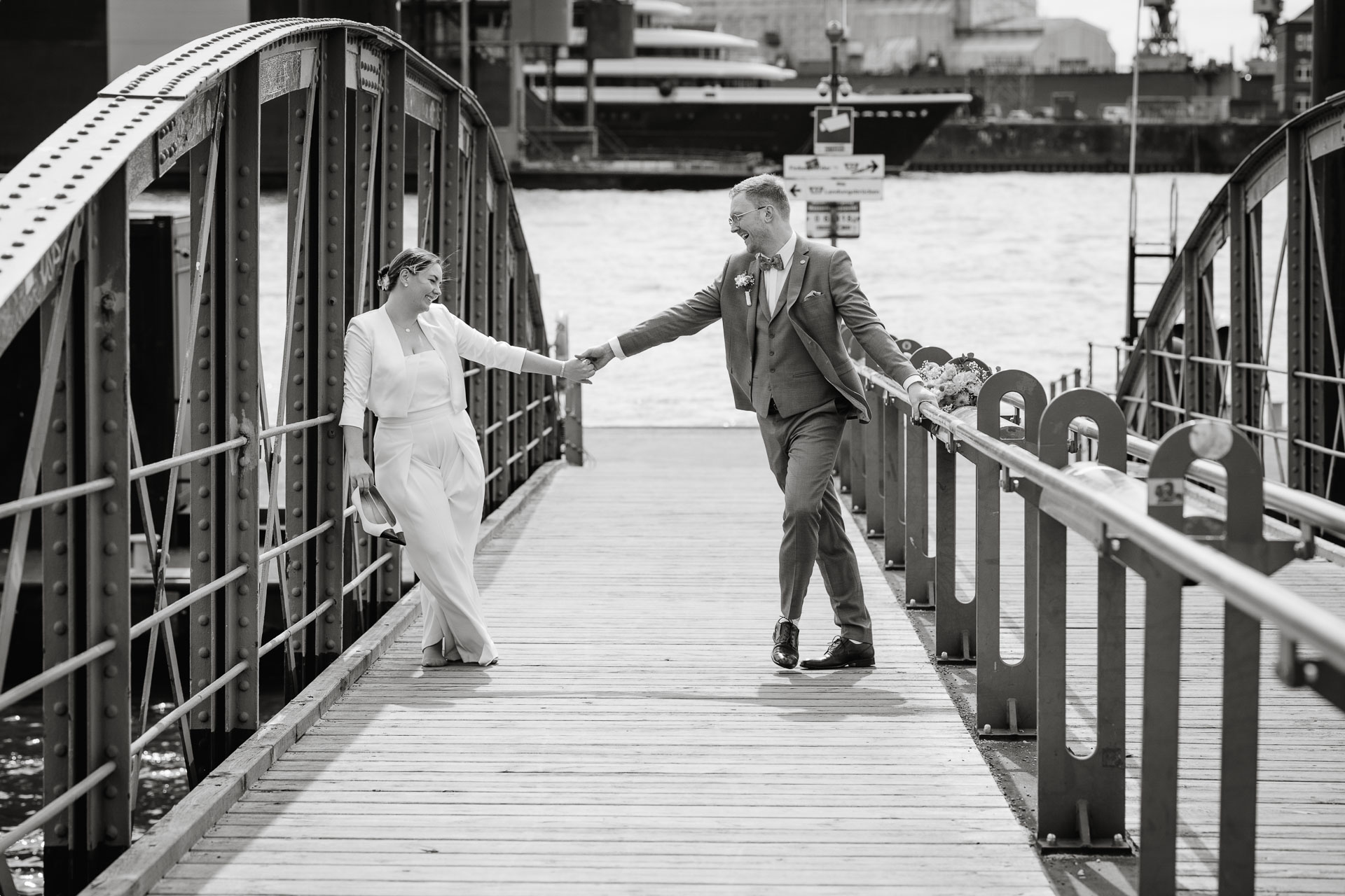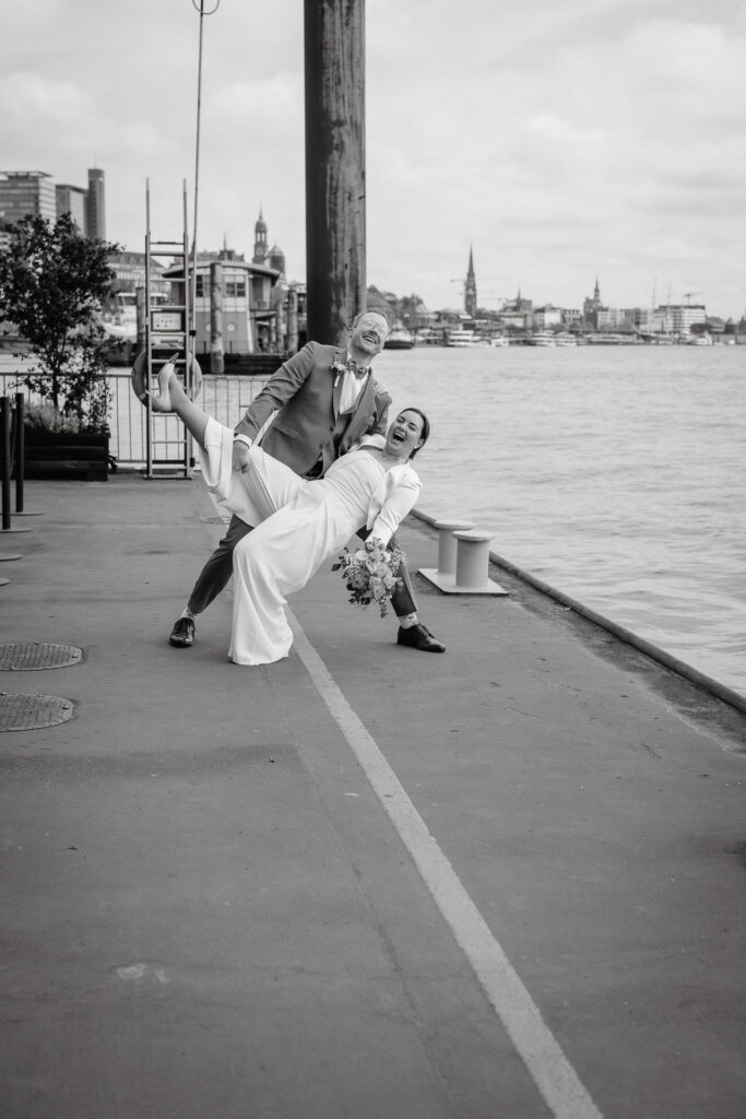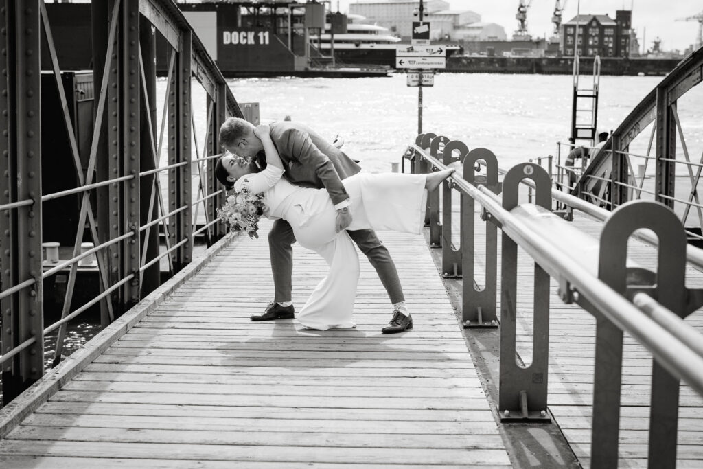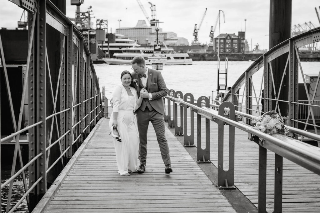 Zwischen Möwenrufen, Hafen und der typischen leichten Hamburger Brise entstand dieses herrlich ungezwungene Brautpaarshooting mit Zita & Philipp. Der Hafen, bot die perfekte Kulisse für die beiden – echt, lebendig und voller Charme.