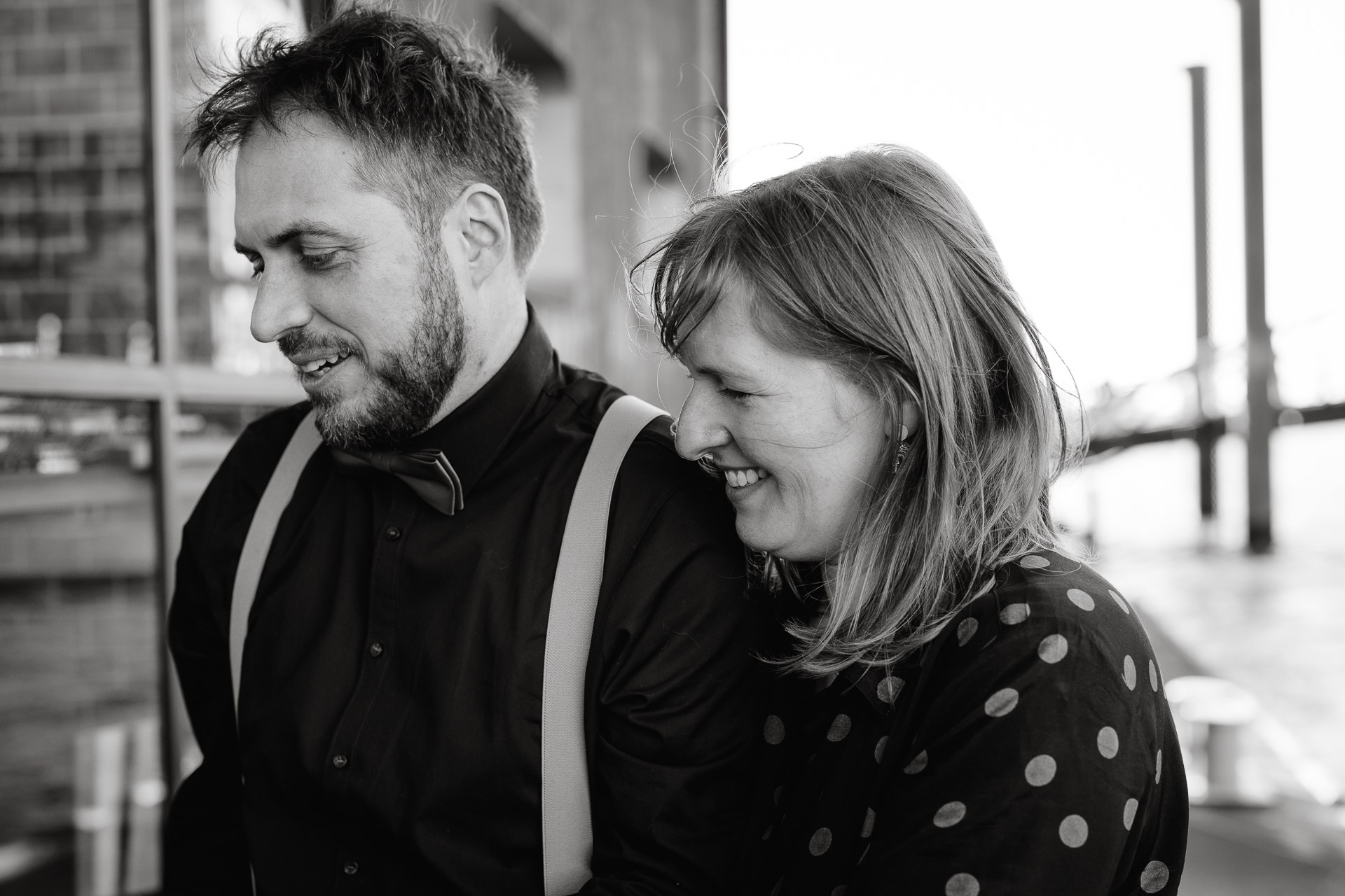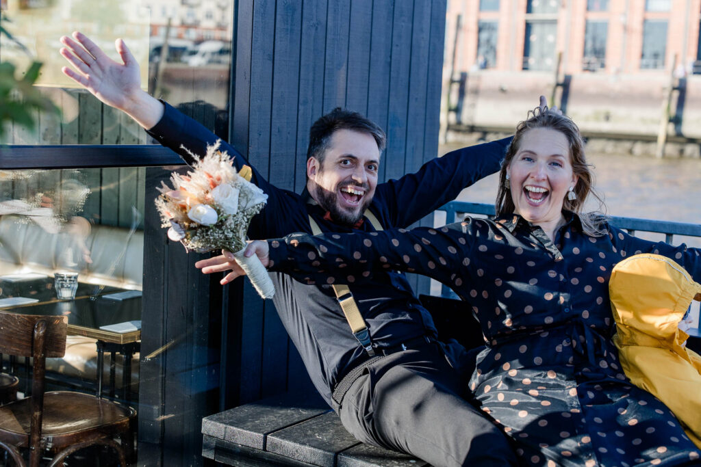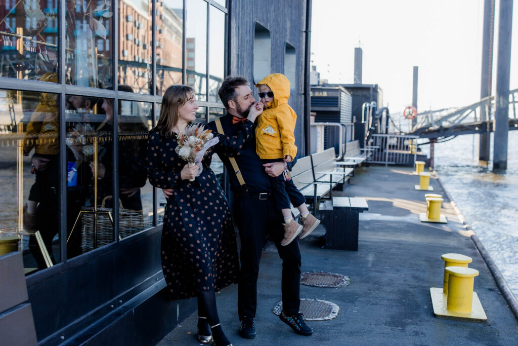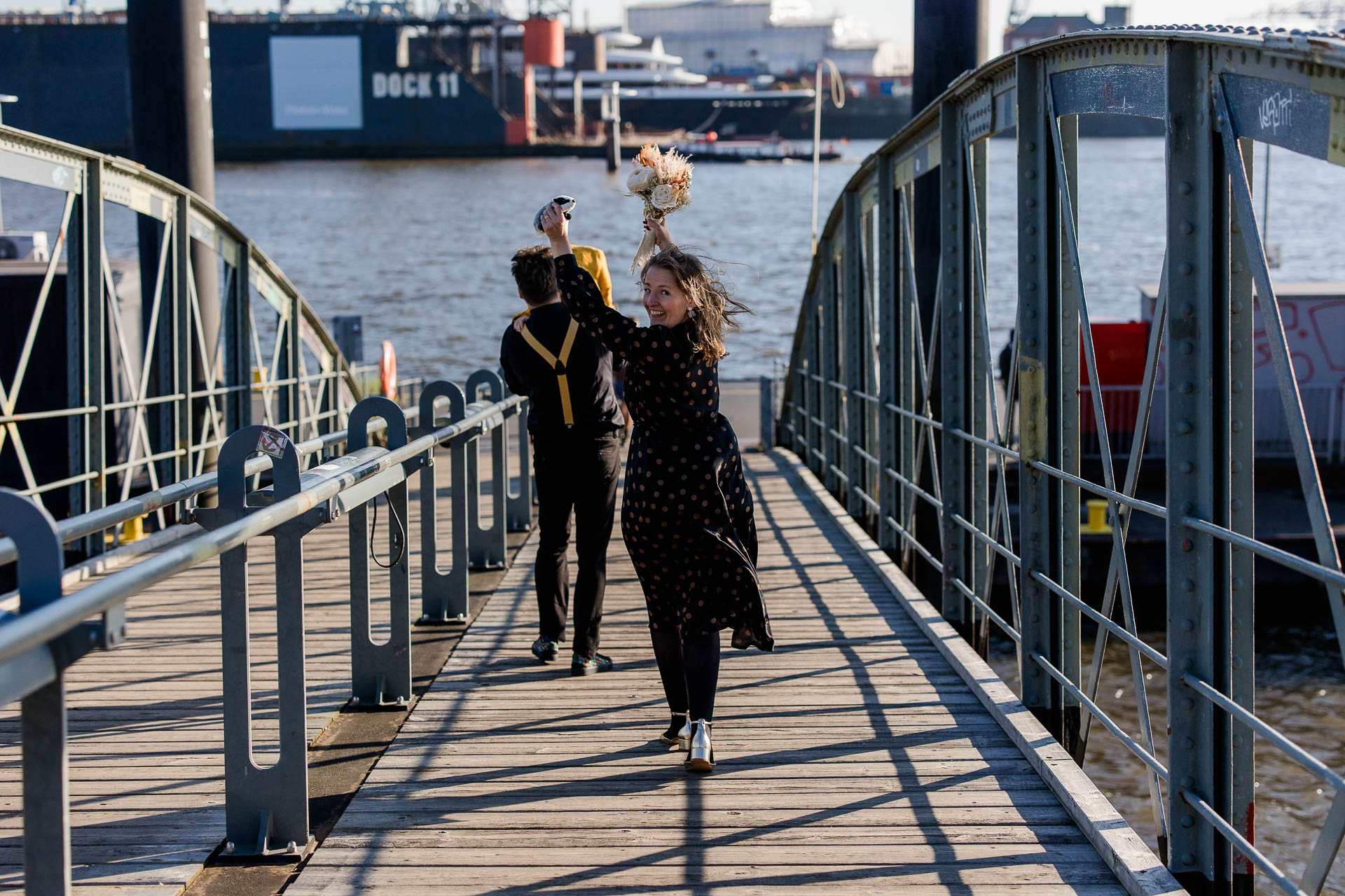 Ein warmer Wind wehte über den Hamburger Hafen, als wir uns nach standesamtlichen Trauung für ein entspanntes Shooting am Fischmarkt trafen. Sonne, Wolken, Kräne und Hamburger Hafen pur. Schöner geht´s kaum.